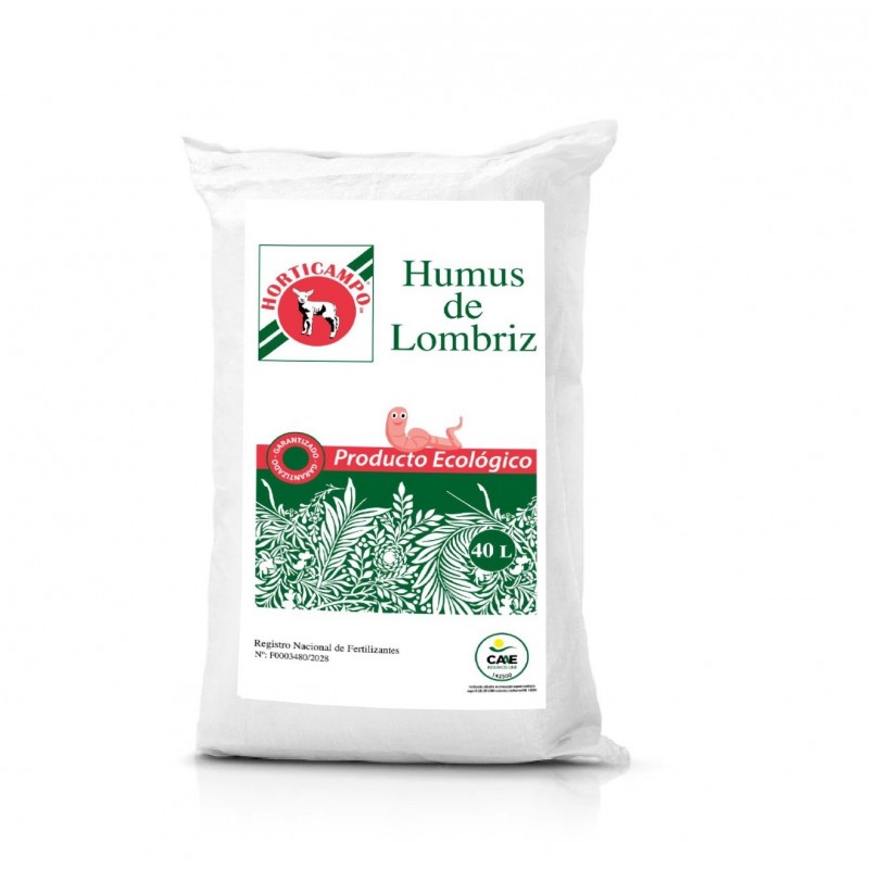 Humus de lombriz Horticampo es una enmienda orgánica sólida, elaborada a partir de estiércol (F0002872/2027) procesado por lombrices rojas californianas (Eisenia Fétida).